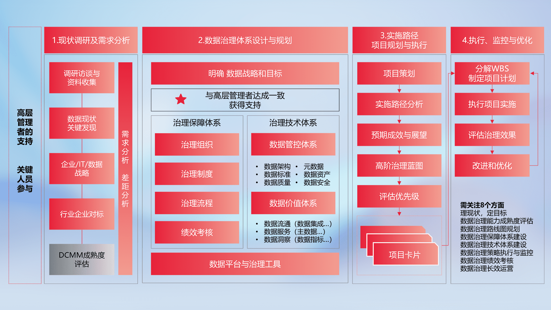 制定并执行统一的数据标准,,,规范数据定义和格式,,,,消除冗余和不一致性,,,,实现跨部门和跨系统的数据一致性,,为企业提供标准化的数据基础。。。